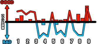 1試合を通じてどのシーンが盛り上がったかを視覚的に伝えます。
