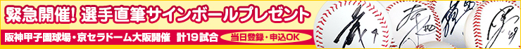 ご来場の「Tigers iD」会員様(公式ファンクラブ・ファンクラブKIDSを含む)を対象に抽選で50名様に「選手直筆サインボール」をプレゼント!
