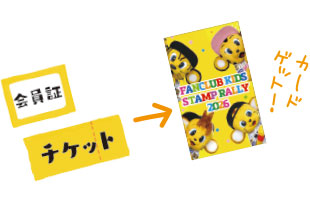 対象日の初回来場時に2026ファンクラブKIDS会員証(またはデジタル会員証)と当日のチケットを持参して、まずは受付場所に行ってスタンプカードを手に入れよう!