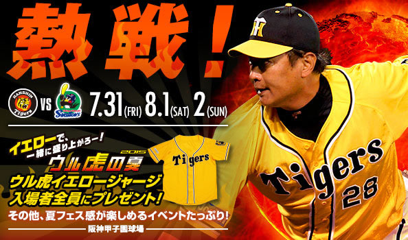 7/31(金)~8/2(日)は、阪神甲子園球場に東京ヤクルトスワローズを迎えて3連戦。