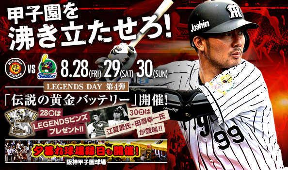 8/28(金)~8/30(日)は、阪神甲子園球場に東京ヤクルトスワローズを迎えて3連戦。