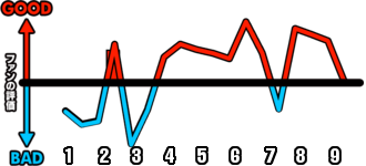 1試合を通じてどのシーンが盛り上がったかを視覚的に伝えます。