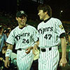 ヒーローインタビューで伊藤敦規(現トレーニングコーチ)と。 |