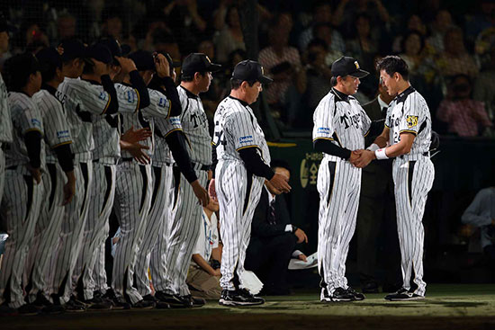 現役引退発表から一夜明けたこの日、9回に「代打桧山」がコールされ、大きな声援が湧き起こった。 |
