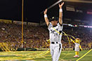 自身初となるサヨナラ本塁打を放ちガッツポーズを見せる。 |