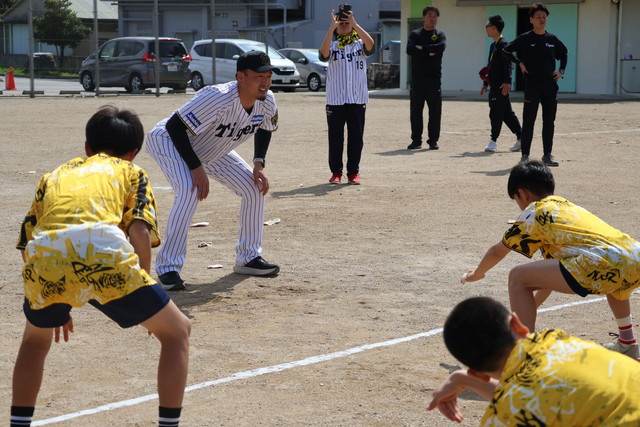 阪神タイガースではベースボールスクール以外に、アンバサダーやOB、タイガースアカデミーコーチを派遣し、小学校の先生に代わって授業を行い、野球に触れ合う機会をもってもらう活動をしております。