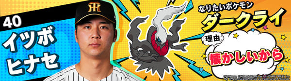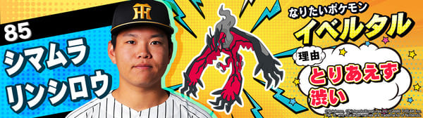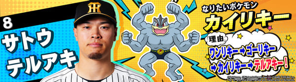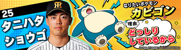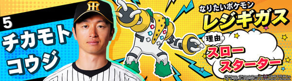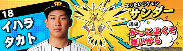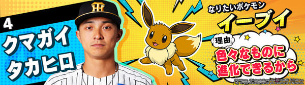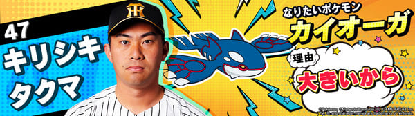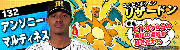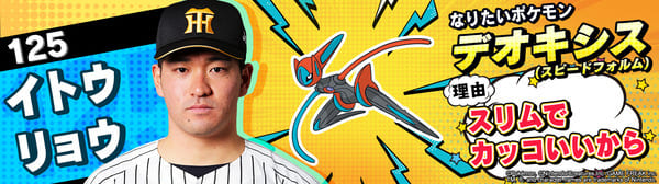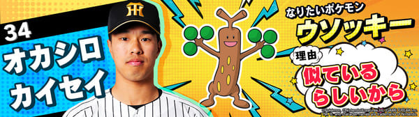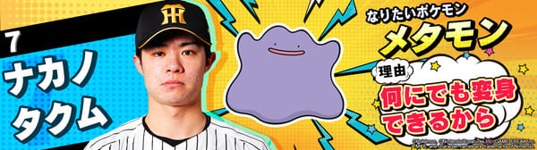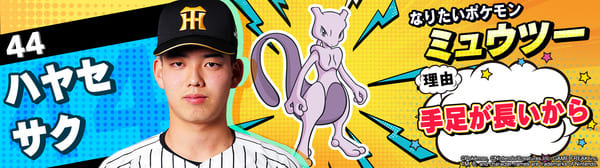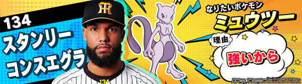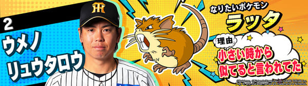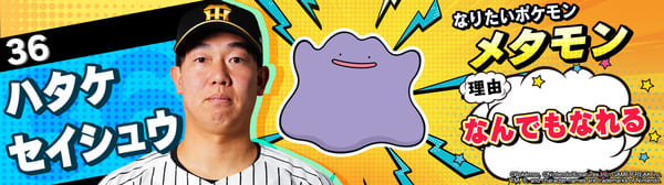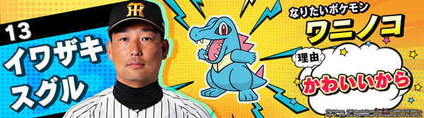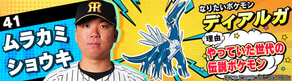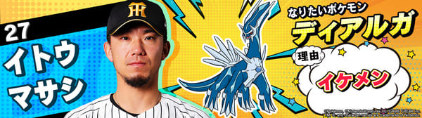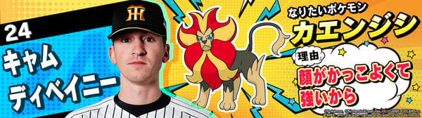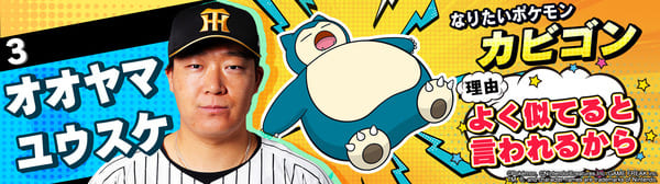 4月17日(金)~19日(日)、阪神甲子園球場での対中日ドラゴンズ戦において「ポケモンベースボールフェスタ2026 ~30年の想いをボールに込めて~」を開催。イベントに合わせて、タイガース全選手になりたいポケモンを聞いてみました!是非、推し選手のなりたいポケモンを探してみてください!!なお、イベント開催期間中は球場ビジョンでも紹介いたします。