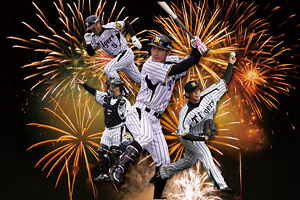 5回裏終了時に数百発の花火を打ち上げ、夜空を鮮やかに彩ります。