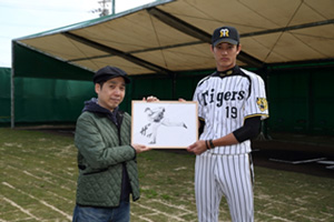 そして今回イラスト公開に先立ち、藤浪選手にいち早く自身の書き下ろしイラストを見せたところ、「フォームがとても似ていたので、驚きました」とコメントするとともに、「今年はこの迫力あるイラストに負けないよう、『飛躍』の一年にしたいです!」という力強く決意表明をしていました。