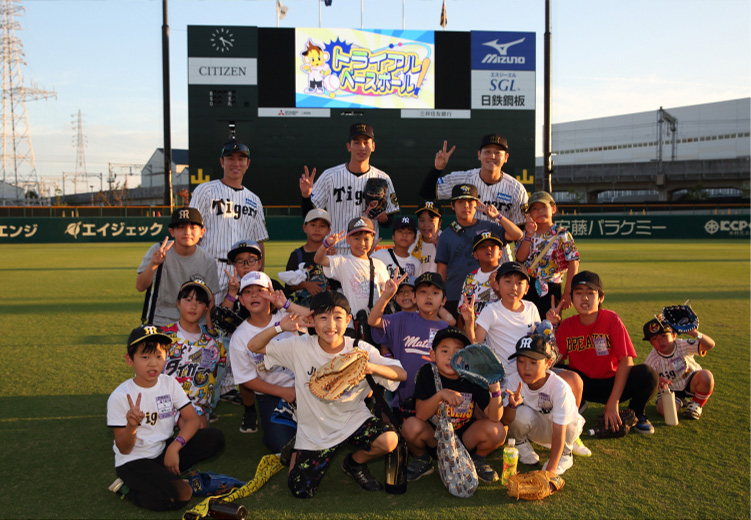 野球が好き、タイガースが好き。そのようなお子様はもちろん、野球をやってみたい子供たちだけでなく、野球をやらせてみたい保護者の皆さまも一緒に野球にトライアルし楽しんでもらえる場の提供を継続的に実施してまいります。