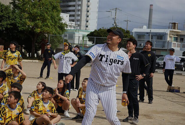 阪神タイガースは甲子園球場やSGLスタジアムを中心とした各球場で、阪神タイガース現役選手や、OB、アンバサダー、タイガースアカデミーコーチによる野球教室を行っております。参加費は基本無料。現在は小学生~中学生を対象とし、初めて野球に触れるお子様向けの教室から技術指導の教室など、不定期に開催されます。